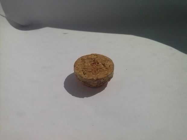Después de conseguir el trabajo hecho con el fusible, hice una tapa de un corcho de vino. Deberás hacerlo según el tamaño del cuello de su fusible. Mina fue aproximadamente 15 mm (~0.6 pulgadas) que va en el cuello y 25 mm (~ 1 pulgada), la altura es 10 m m (~0.4 pulgadas)