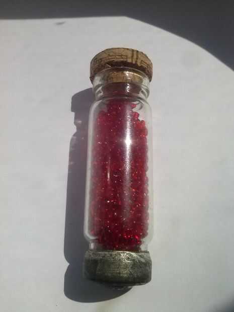 Cuando se hace el anillo, tomé algunos biser granos (rojo para la salud xD) y se llena cerca de 70% a la parte superior y cerrado con la tapa. Después, la cadena a través del anillo y ajustar en consecuencia. Después de eso, os adjunto el cierre al final de la cadena.