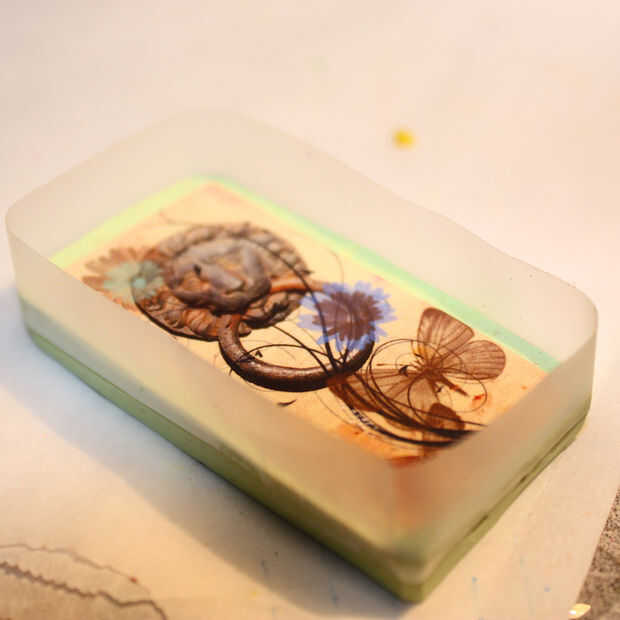 Cinta adhesiva alrededor del borde externo de la pieza de polímero. Lo hago para que el brillo no funciona fuera de los bordes de la loseta.