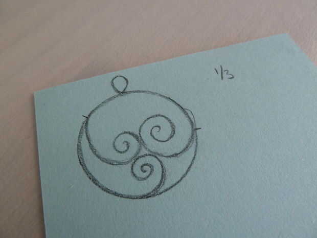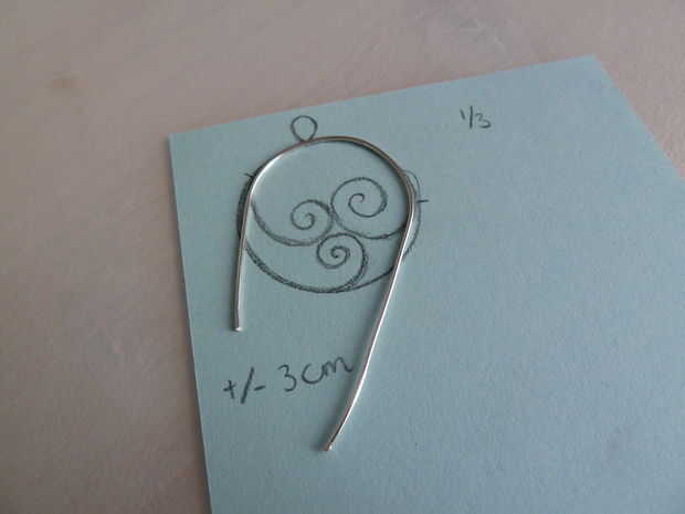 La parte de la doble espiral que está junto al círculo externo, es aproximadamente un tercio del círculo externo. Cortar unos 2 - 3 veces esta longitud.