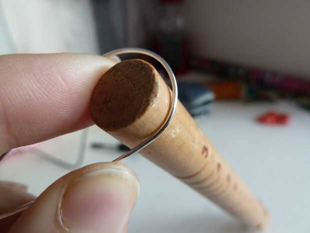 Con el mandril, en forma de alambre para hacer que el grano en medio de la botonera.