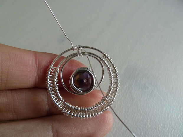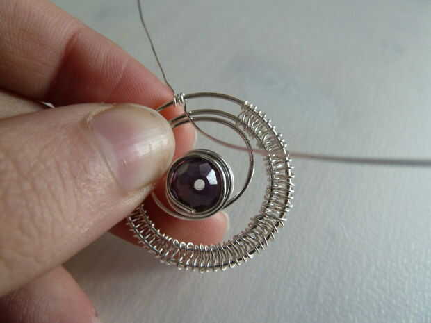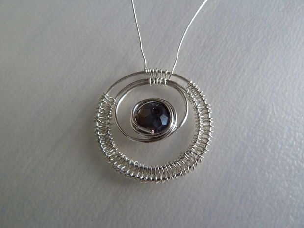 Este tutorial te enseña cómo hacer un colgante intrincadamente envuelto con remolinos bandas de alambre tejido en la parte delantera.Puede tejer la delantera en casi cualquier patrón que desee. Instrucciones para el diseño se muestra aquí como una su