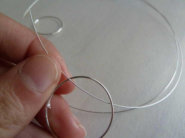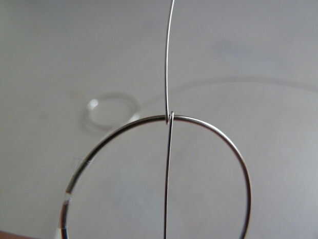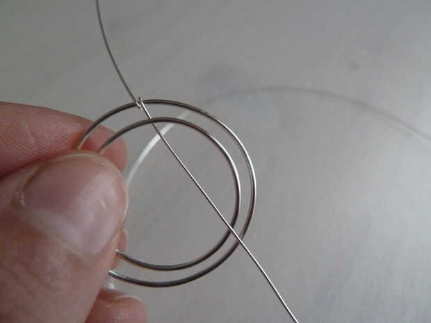 Para impedir que los extremos del alambre se separa mientras que me envuelve, me tomó un poco de cinta adhesiva transparente y envuelto alrededor de la articulación. Luego envuelve el alambre de 26 calibre alrededor del círculo exterior y comenzó a envolver. Casi tan pronto como empecé a envolver, la cinta comenzó a mover, no mantiene los extremos juntos en todo.