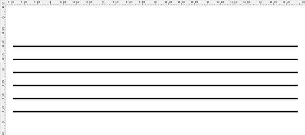 Realmente no importa el tamaño inicial del personal y notas, como puede escalar el diseño final hacia arriba o hacia abajo según sea necesario para convertirse en colgante de tamaño. Empezar por trazar una línea horizontal negra (usado negro para indicar que las líneas se ser grabadas). Mi línea pasó a ser aproximadamente de 5.5" de largo. Utilizando la función de paso y repetición, copias de cinco con un desplazamiento vertical. Experimenté con unos desplazamientos diferentes hasta que miraban en torno a mí. Esto resultó para ser un desplazamiento de 0,25". Usted también debe jugar con espesor de la línea hasta derecha a las cosas se ven, mina terminó con una anchura de 8px.