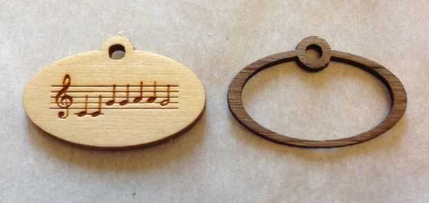 Tiempo para jugar con el laser!  Para la pieza posterior (que utiliza la luz color tilo) grabado en 100% de potencia y 40% de velocidad y corte en 100% potencia y 2.5% de velocidad.  El nogal necesita solamente a cortar y velocidad potencia y 2% 100% funcionado bien.