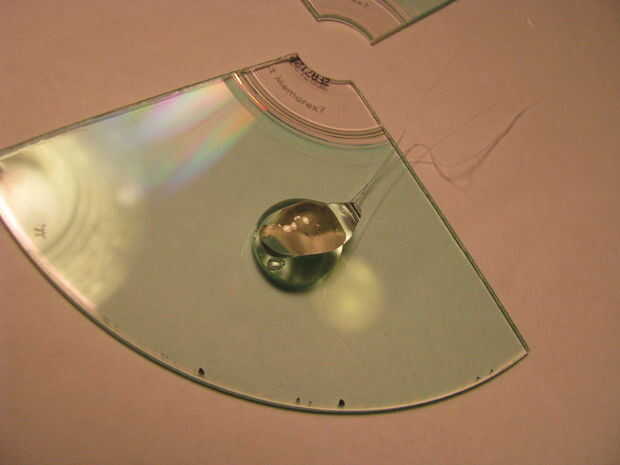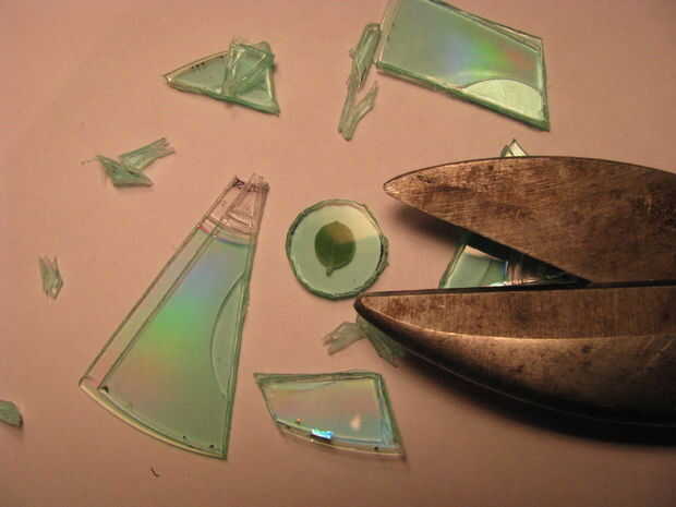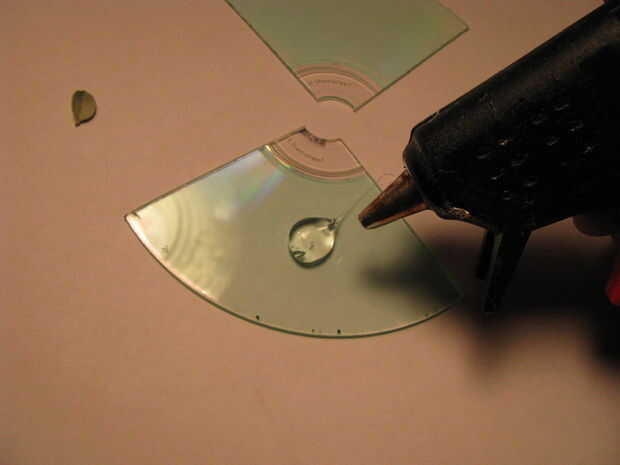Poner su recuerdo en la cola y luego añadir más pegamento en la parte superior. Utilizar otro pedazo de disco, plateado lateral en el interior, para sándwich todos juntos. Presione las piezas para eliminar burbujas de aire de la entre las capas.