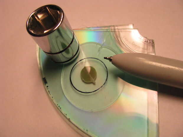 Utilizar un enchufe para trazar un círculo en el recuerdo. Corte el círculo con unas tijeras fuertes.