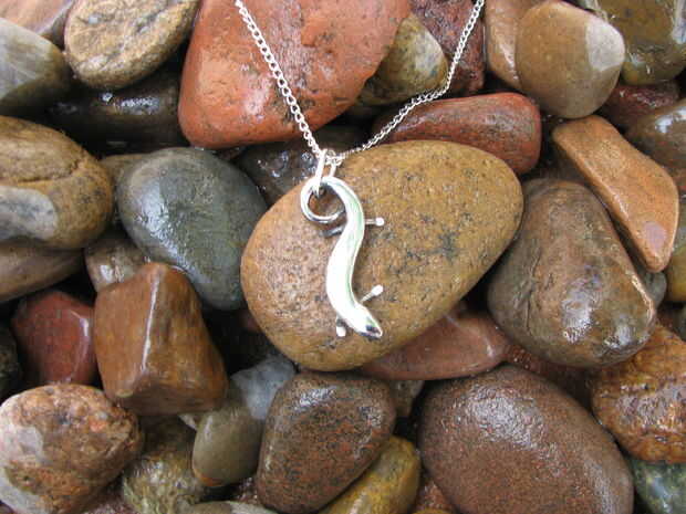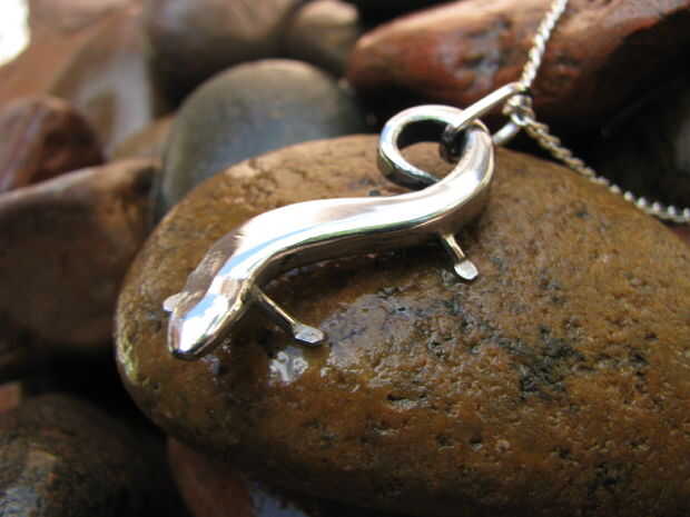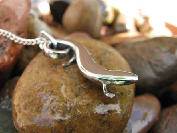 He hecho este colgante utilizando la "Salamandra parda" como modelo. Se hace de una sección de acero pasador varilla de 3/16" y un clip de papel. Tuve un buen rato haciéndolo. La barra está disponible en cualquier tienda de mejoras para el hogar.