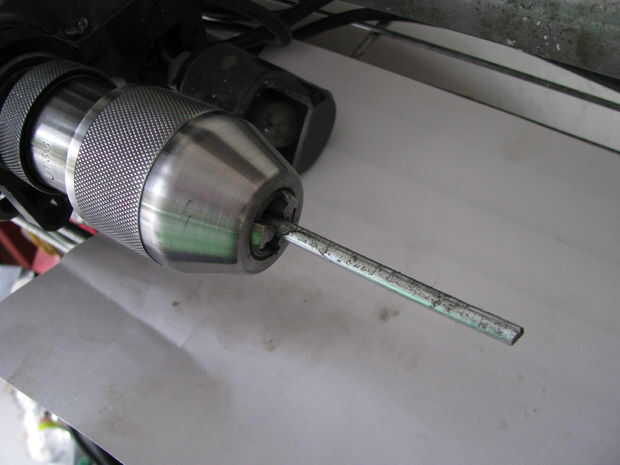 Chuck la sección del pasador en una prensa del taladro. El que estoy usando es una prensa de 8" en su lado.