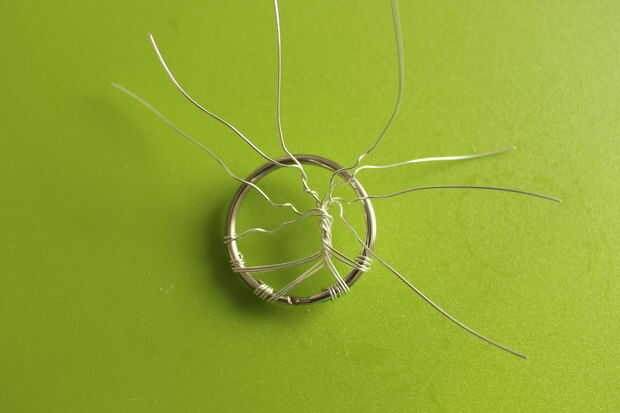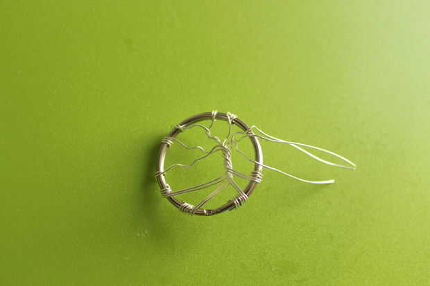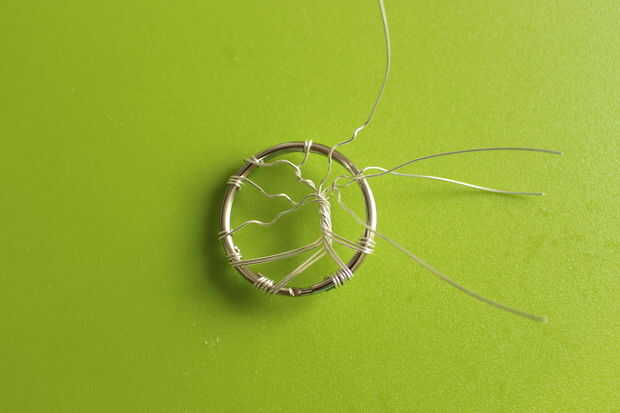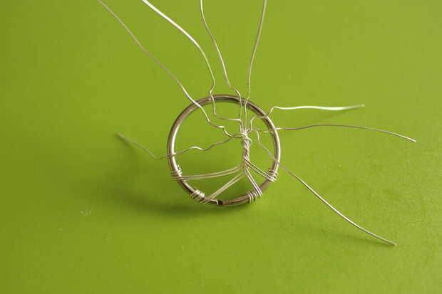 Para poner fin a las sucursales, envuelva el cable alrededor del anillo de claves, córtala y fijarlo con la abrazadera hasta el interior del aro. Esta es la misma técnica que utiliza para las raíces, pero sólo con un cable. Para hacerlo un poco más árbol-como, yo envueltos dos de los cables juntos y que se dividen más adelante.