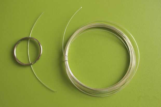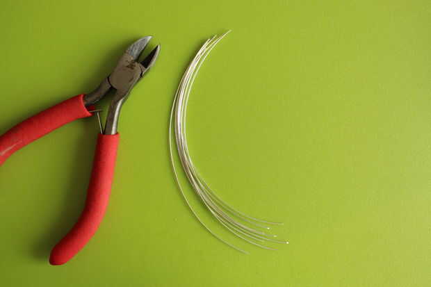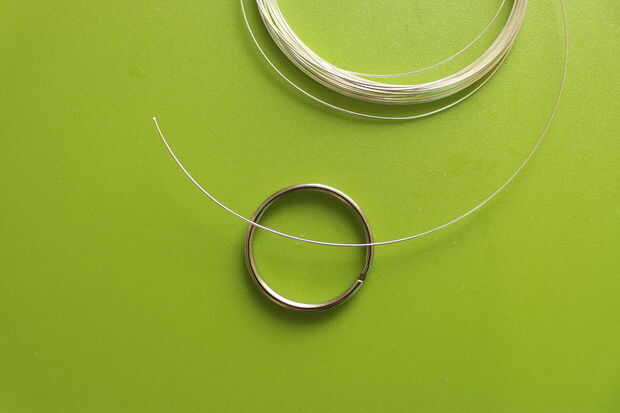 Tomar el alambre y colóquela en la parte superior del llavero. Asegúrese de que permita que el cable se extienda un poco ambos lados del aro, sobre unos cm / pulgada por lado hará bien. Una vez que se ha cortado la primera pieza, se usa para cortar siete otras piezas del mismo tamaño, que le da un total de ocho piezas. Podría decidir hacer más, pero intenta ponerte un número par de piezas. Esto hará que el colgante todo el más fácil del proceso.
