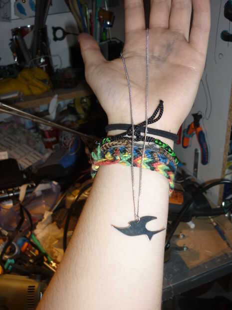 A continuación, tomar el gancho y pasarla a través del orificio y alrededor de la cadena. Ciérrelo con una ligera presión con un par de alicates planos.