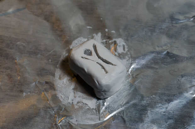 Utilice un trozo de sugru y crear un pequeño "lazo", o un agujero en la parte superior del pendiente, por lo que más tarde puede colocarlo en una cadena o una cadena.