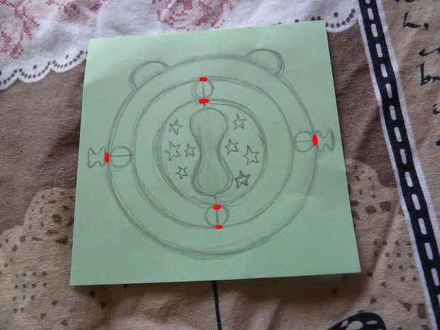 Para obtener un poco de una idea de cómo hacer este colgante, empecé dibujando el turner de tiempo. Una búsqueda en google imágenes conduce a un montón de fotos de referencia, así que realmente te recomiendo echar un vistazo a los de aquí.