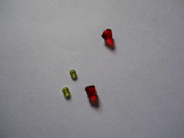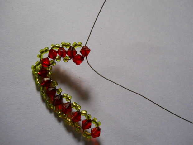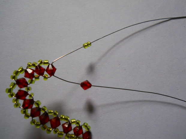 Ahora tome 1 perla de cristal y pasar por un lado del alambre y pasar el otro lado del alambre con el mismo grano y hacer lazo
