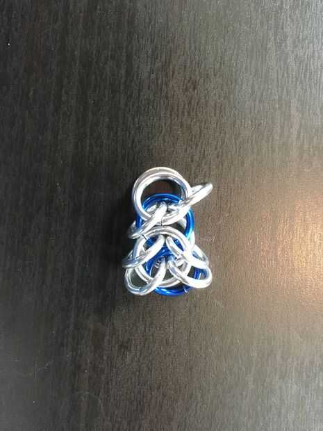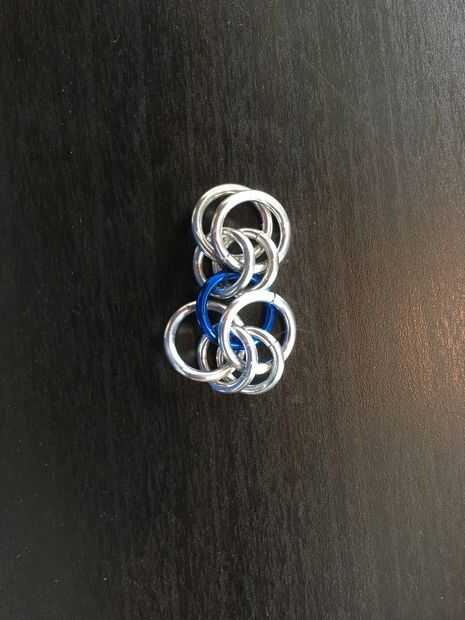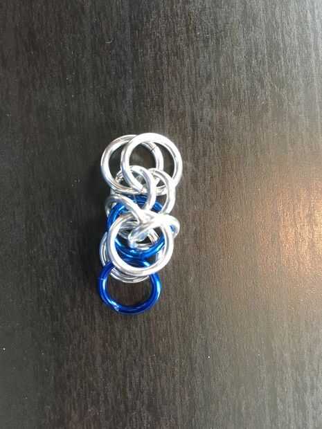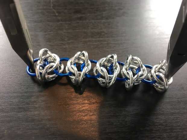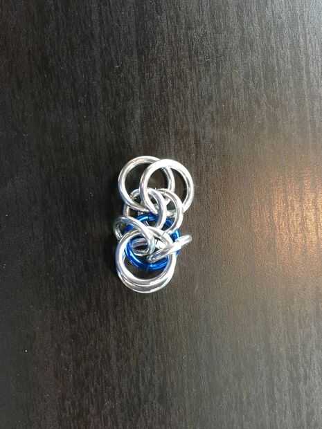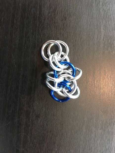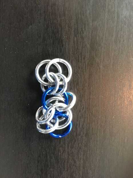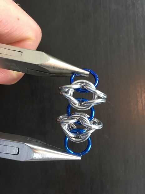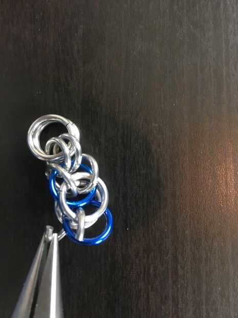 Este es el principio básico de la cadena de celta. Siga los mismos pasos para los anillos regulares sueltas de gran diámetro en el otro lado de la cadena para agregar un 3er anillo de acento. (Imágenes 7, 8 y 9)
