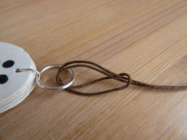 Tomar un trozo de cuerda. Mina ya está en el tamaño correcto y ya ha sido anudado. Poner la mitad de la cuerda a través de la botonera. El final de la cadena y tire a través del lazo creado en el paso pasado. Tire firmemente para conseguir el nudo.
