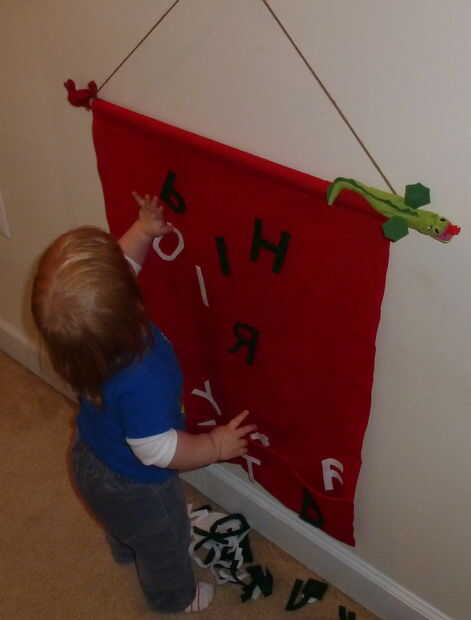 Cuelgue el tablero de fieltro actividad al alcance de alguien que va a salir una patada de pegar letras en, tirando de ellos y repitiendo toda la tarde.