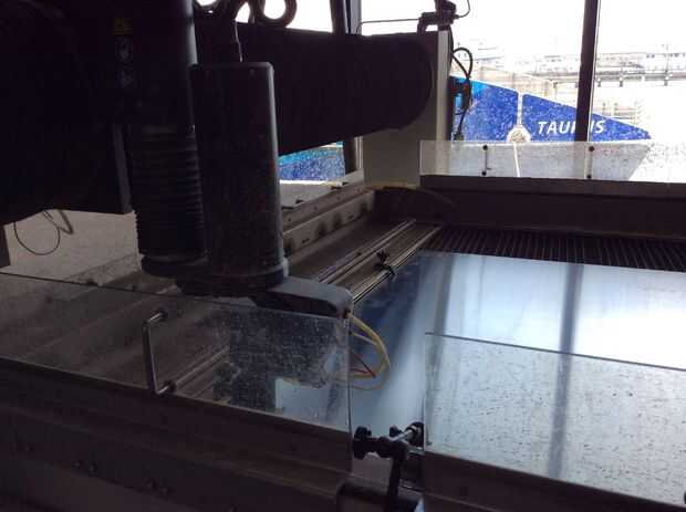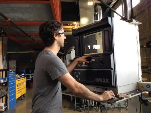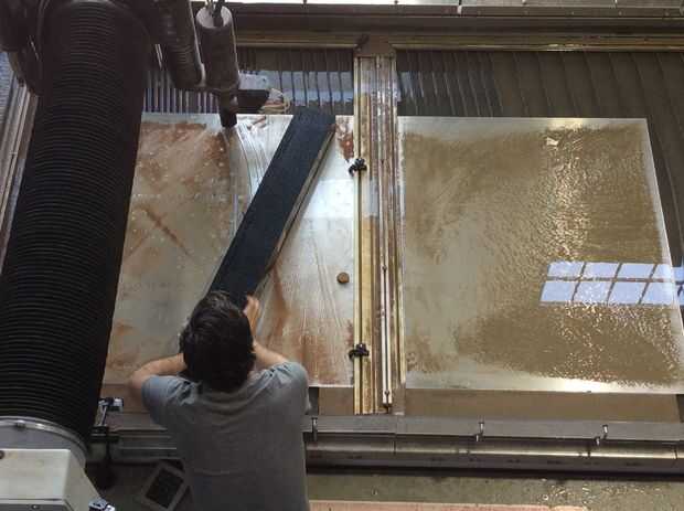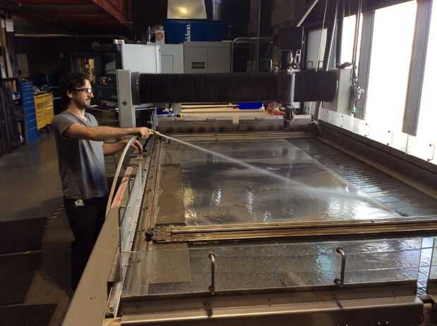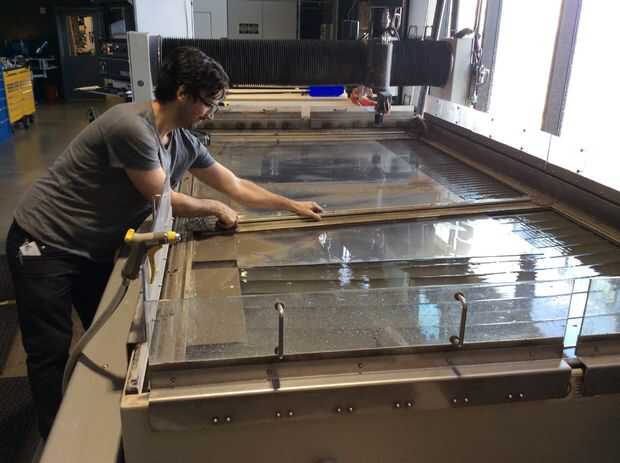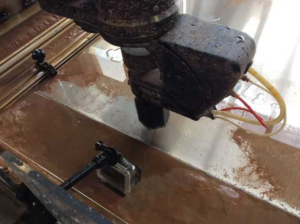 - Después de que se ha centrado tip del chorro de agua en el material, y medidas para asegurarse de que no corres en cualquier abrazaderas, es hora de cortar!