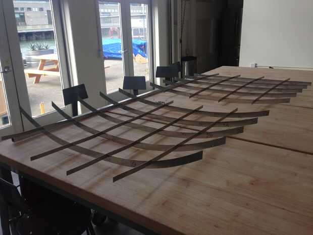 En primer lugar hemos reunido las conexiones crimp. Las costillas pequeños encajan en las costillas más grandes que componen la red. Una vez que tenemos todas las costillas sentadas fuimos detrás a través con un destornillador y prensado cerrado las levas de costilla.