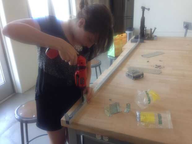 Después de las secciones de 2 red estaban conectadas nos trasladamos a la columna vertebral. Atamos las escuadras que conectan la columna con la rejilla usando rojo locktite. Esto traba las roscas para asegurarse de que el no va a salir.