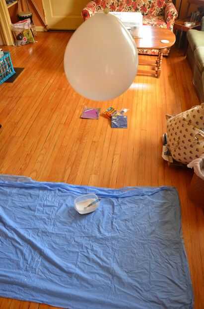 ** Atando una cuerda entre dos sillas y colgar los globos de la cuerda trabaja mucho más fácil puesto que usted va a ganar 4-6 pequeñas bolas de hilo mediano **