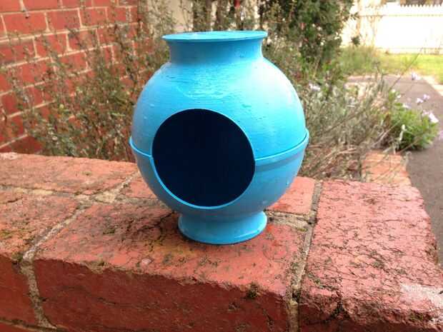 Esta impresión 3d es una esfera de 150mm con un agujero en el centro para permitir la colocación de las plantas solicitadas.
