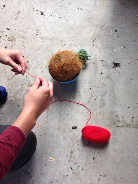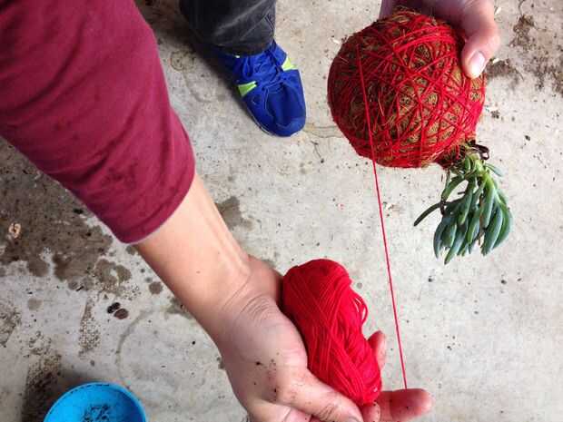 Esta es la parte difícil donde empiezas a envolver cuidadosamente la esfera con el hilo.