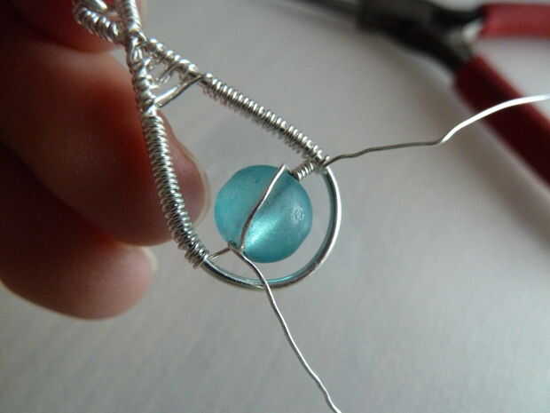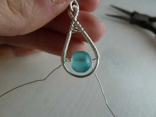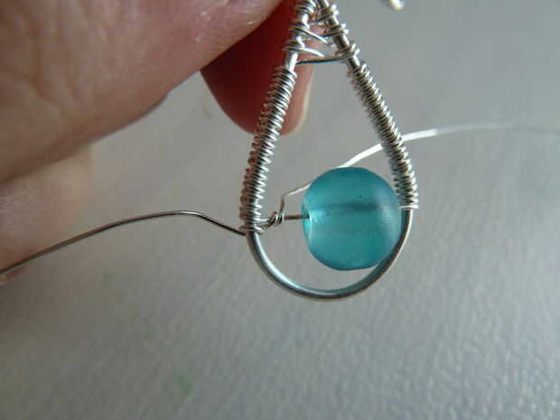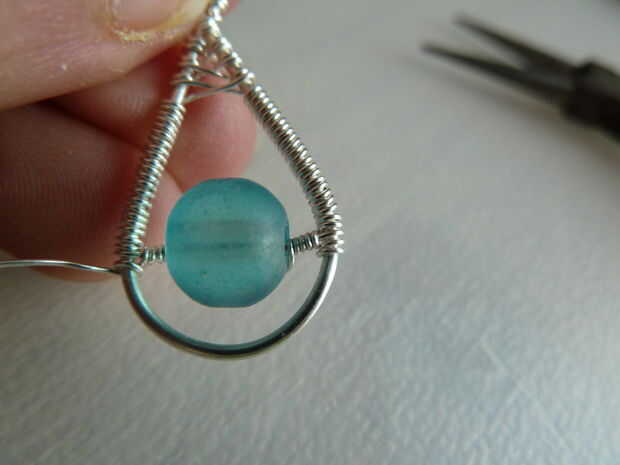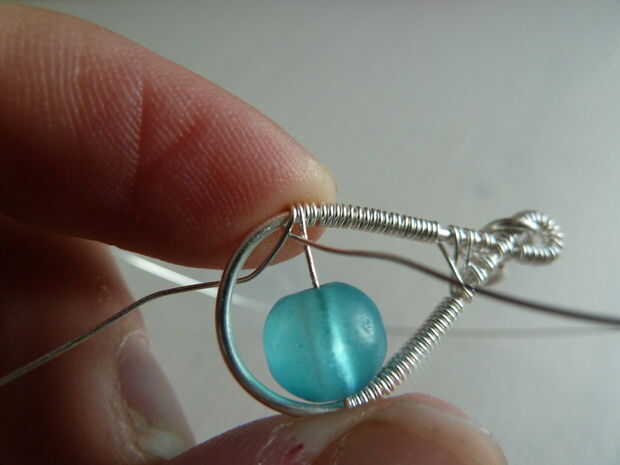 Corte un pedazo de 0,4 mm / cable de calibre 26. Envuélvalo alrededor del alambre de base un par de veces, justo bajo el lugar donde comienza la del bobinado. Siguiente bobina alrededor del cable delgado hacia el talón. Mantener un ojo en su grano, una vez que está sentado junto a su enrollado y en medio de la botonera, es tiempo de pasar al otro lado del talón. Esto se muestra en la cuarta foto. Después de eso, puede continuar a arrollar.