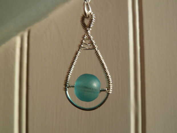 este colgante está hecho con un pedazo de vidrio fundido en forma de lágrima, pero también se podrían utilizar una piedra u otros elementos de diferentes tamaños y formas.La siguiente técnica se adapta fácilmente para satisfacer sus necesidades.Ningú