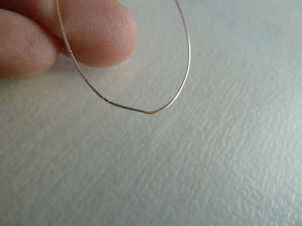 Corte un pedazo largo de su alambre de 0,4 mm/calibre 26. Encontrar el centro y márquelo. Sólo utilicé el marcador naranja que también usé la base alrededor de la curva. Básicamente cualquier cosa que no se verán a través de su cuenta será suficiente.