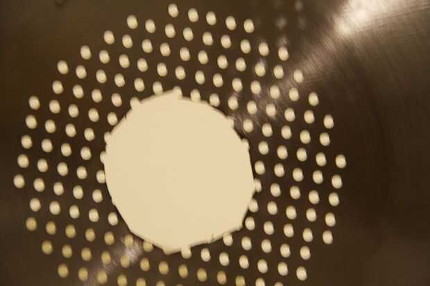 Trate de mantener la rueda de la herramienta dremel vertical, a mantener limpia por los cortes. Enciende, lentamente toque para el colador y ponga una muy ligera presión en él, mientras lo sujeta firmemente. Tan pronto como es a través del metal, la levante y mueva hasta el siguiente corte. Me tomó 10 cortes para completar el círculo, (vale, el decagon) pero esto no es un número importante.