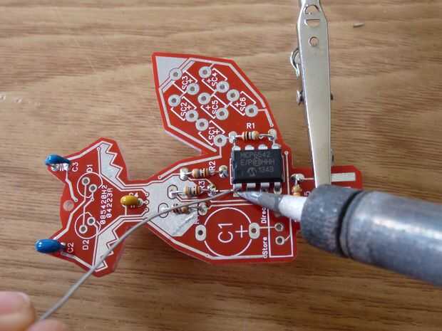 La soldadura en la parte superior como de costumbre. Usted también puede soldar en la espalda, tenga cuidado de no soldar las patas entre sí.