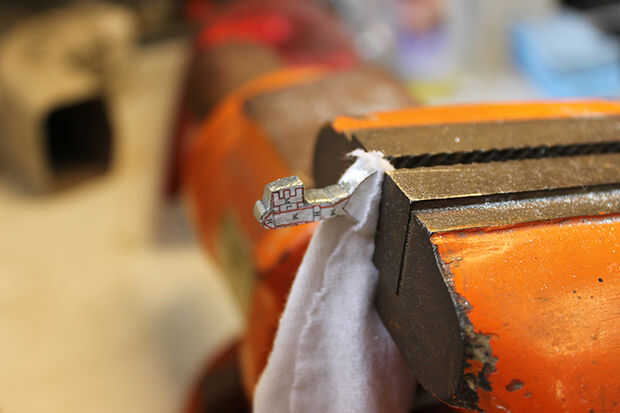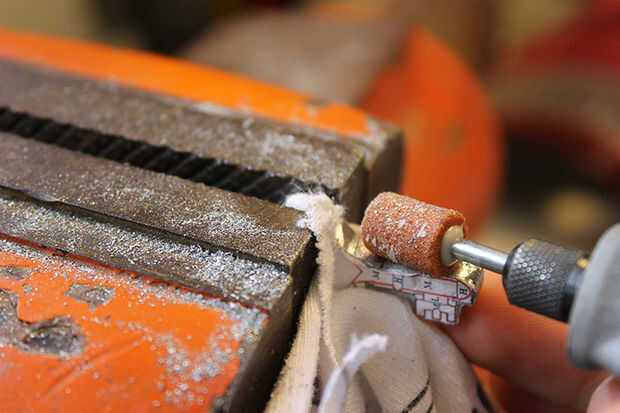 Luego tomar su archivo y Sierra y lentamente empieza a arrastrarse hacia las líneas de detalle rojo. Aquí es donde tienes que ser muy cuidadoso, este es un proceso sustractivo y nada que te quitas ya no existe permanentemente. La herramienta Dremel va a venir bien aquí para obtener las curvas de aspecto agradable. Mientras hacía esta seguro que llevas gafas, nada duele más que conseguir un pedazo caliente de metal en el ojo.