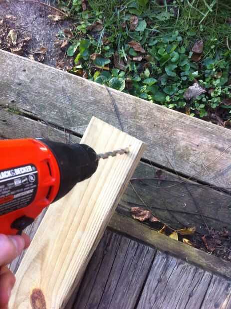 Haga dos agujeros en el bloque de madera espaciados uniformemente.