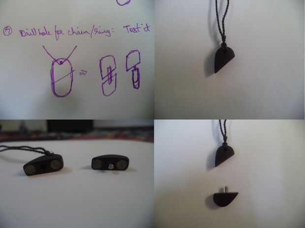 Fijar la broca de hierro a la mitad e ingenio de los cuatro imanes para los respectivos espacios un pegamento... Luego perfore un agujero sin la punta de hierro para sujetar una cuerda o cadena...