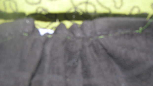 1) utilizar la máquina de coser para hacer un frunce de la puntada en la parte superior de la toalla. Recoger la toalla de té hasta que encaje dentro de la manopla.