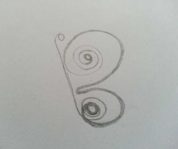 La plantilla o patrón debe incluir (principalmente) las líneas exteriores del ala, las áreas de los bucles (para la creación de los remolinos) y la antena de la mariposa,
