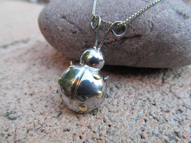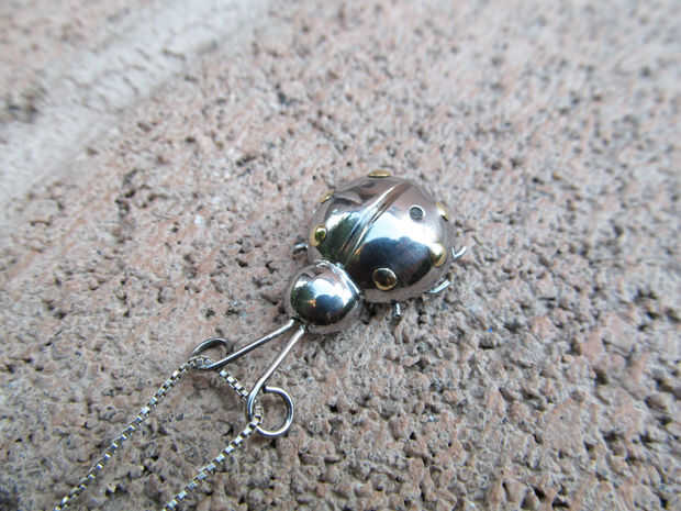 estaba en mi camino a California. A unas pocas millas fuera de Vegas, mi coche empezada sobre la calefacción. Con 250 millas para ir, no había manera que iba a hacerlo. Así que volví a casa y descubrió el próximo vuelo. Esto es lo que hizo hasta que fue hora de ir al aeropuerto. Es una mariquita de acero, latón y soldadura de plata.