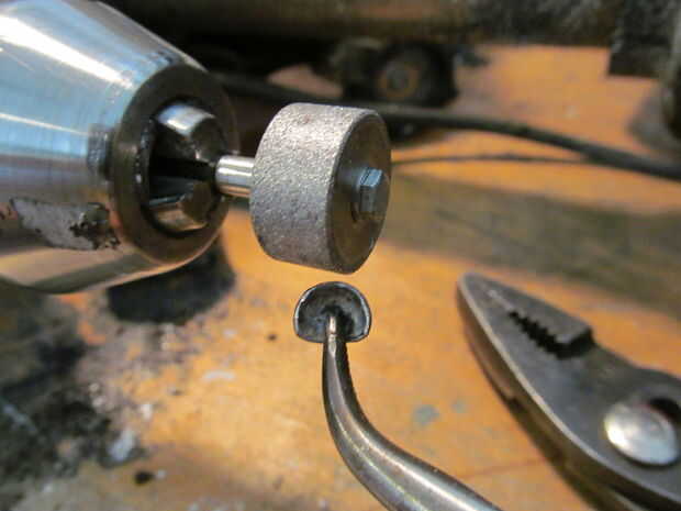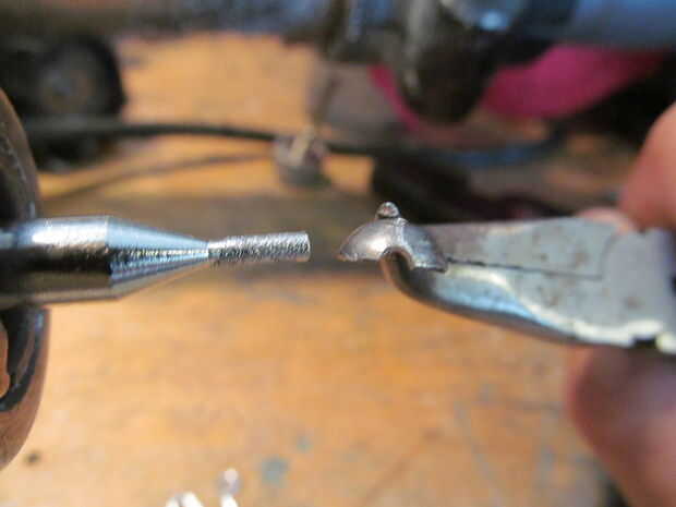 A continuación, la antena son en forma de un clip de papel y soldado en la muesca. Puesto que la cabeza tiene más masa y luego la antena, querrá volver a colocar la llama sobre la cabeza. La soldadura chupan el derecho en la ranura.