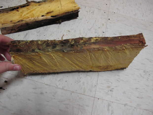 Usted también tendrá un bloque de pegamento, estoy usando una pieza de 1 "x 2" Pino aquí porque es lo que tenia, pero debe usar algo que no astillan muy fácilmente (tal vez álamo o cualquier otra cosa tener a la mano). Tuve problemas con el osage saliendo porque el pino astillada donde estaba la línea de pegamento.