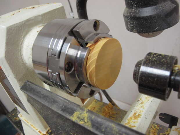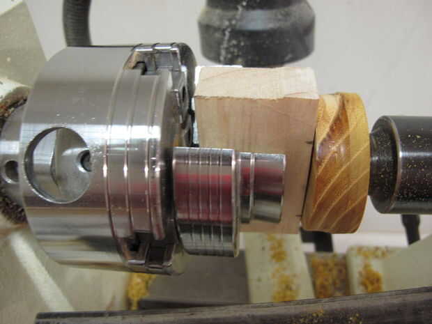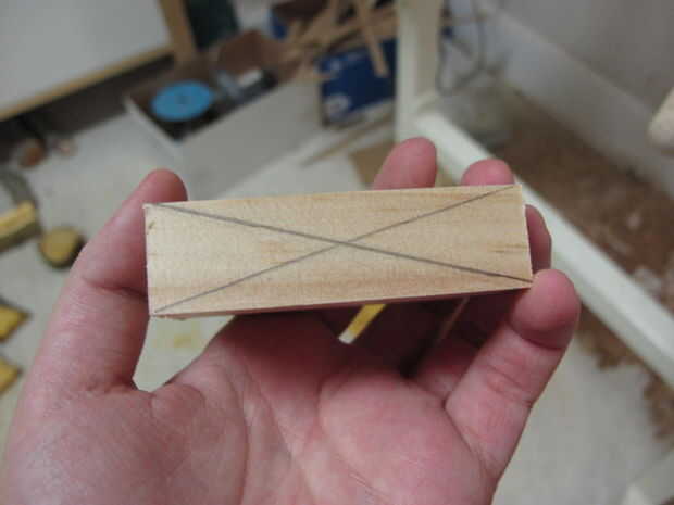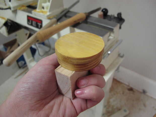 Corte una sección del material pegamento bloque unas pocas pulgadas de largo y marque el centro. Utilice pegamento caliente, CA u otra cosa que confiar para pegar el disco de osage en el bloque, tratando de mantenerlo más centrado posible.
