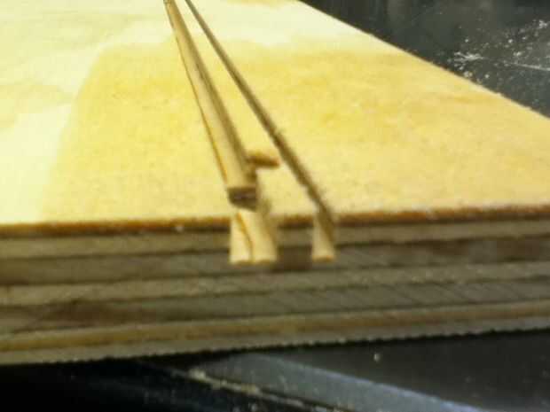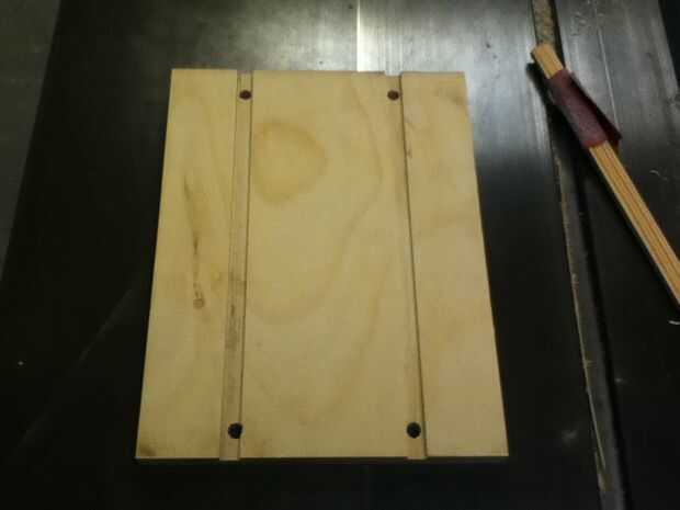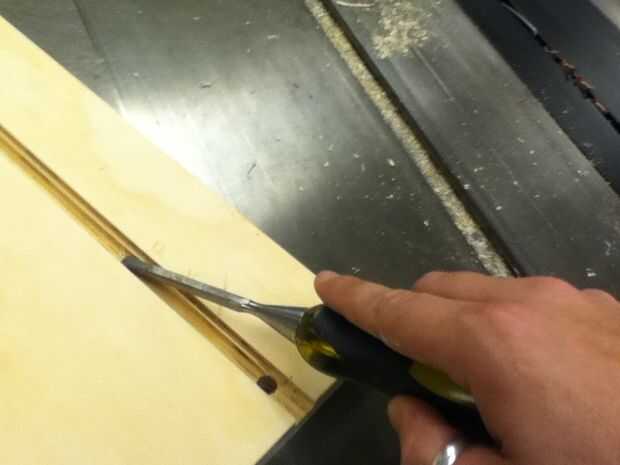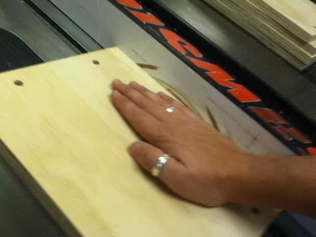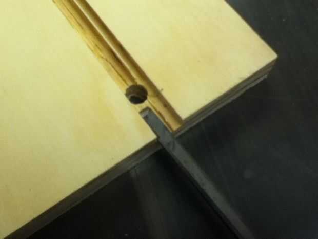Usando una tabla vio, establece la hoja de baja para que sólo cortará tal vez 1/8" a 1/4" de grosor. Pase la pieza sobre la sierra para marcar la madera con los agujeros. Esto permitirá que la cuerda en esta muesca. Ver fotos.
