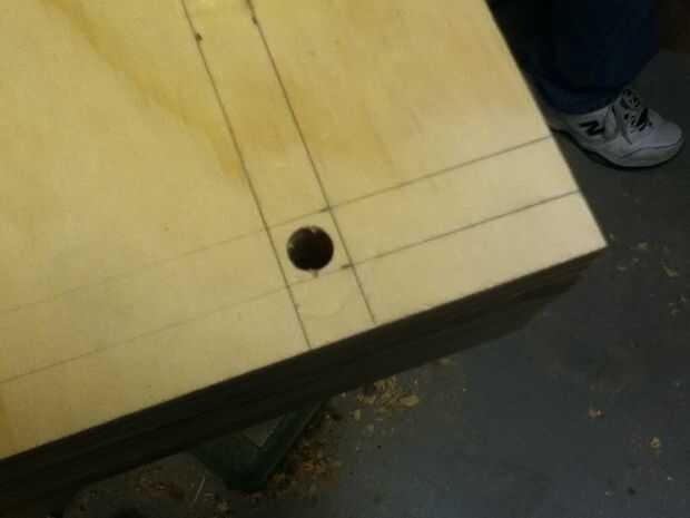 Usted necesitará Perfore 4 orificios (1 de cada esquina) para que las cuerdas para pasar a través. La cuerda es 1/2", por lo que los agujeros deben ser sólo un poco más grandes. Dejar cierta distancia del borde. Ver foto.