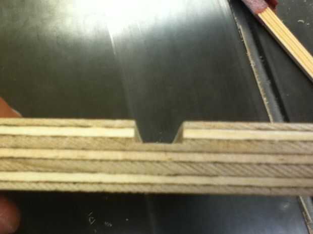 Comienza por cortar los límites de cada ranura. Mi ranuras son 1/2" de ancho por 1/4" profundidad por "longitud de la plataforma – 12"