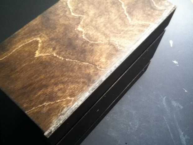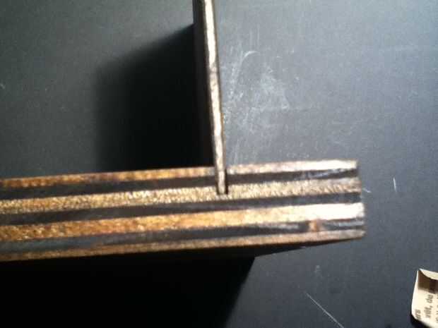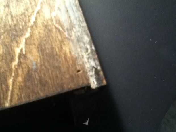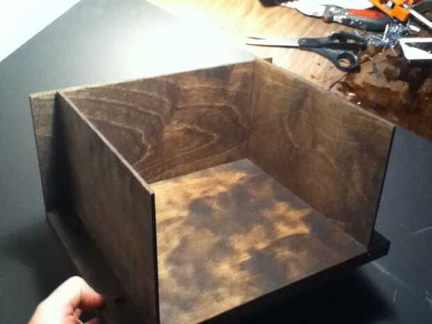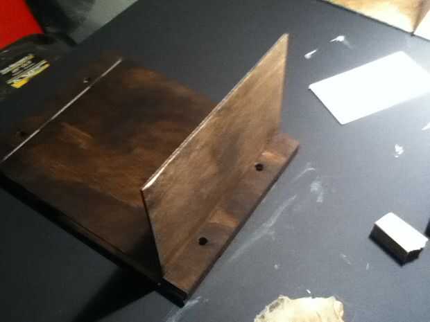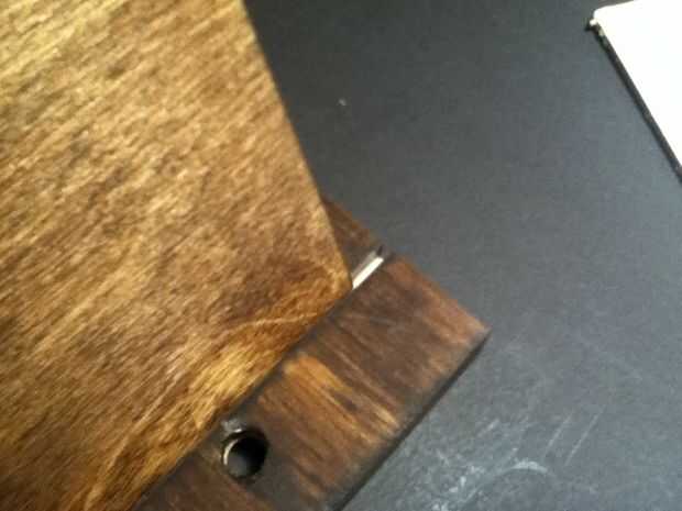 Las última fotos pocas en este conjunto muestran la pieza lateral se inserta la pieza posterior ser clavado en. (Nota que manchada la madera después de hacer las piezas individuales)