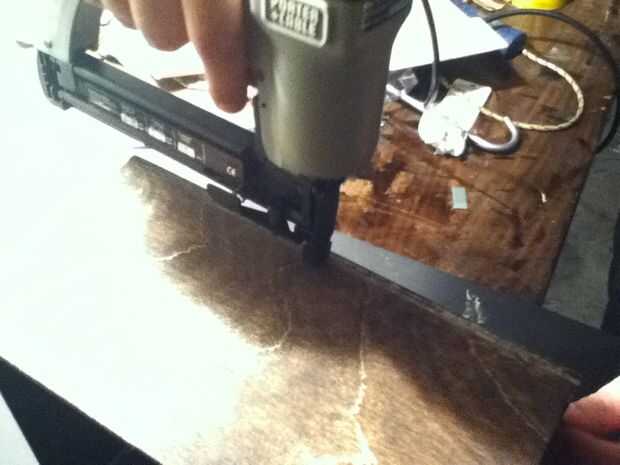 Otra vez, podría omitir esto y simplemente pegamento/la pieza posterior en clavo sin un surco. Este surco fue puramente para las miradas. Asegúrese de que la pieza posterior del clavo en la parte inferior con clavos tachuela pequeña.