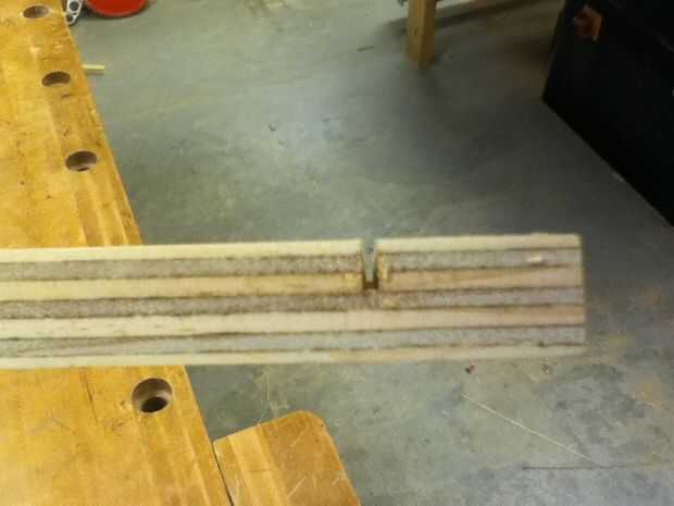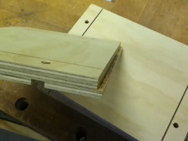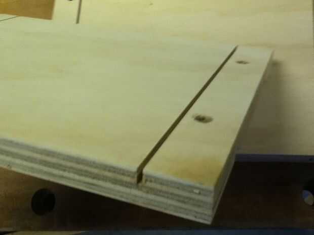 Para la pieza posterior (que es 1/4" espesor x 1' largo x 6" de alto) que necesita cortar una ranura de 1/4" de ancho toda la longitud de la plataforma. Será perpendicular a las ranuras de la pieza de lado. Ver foto.