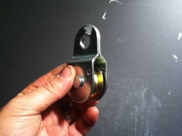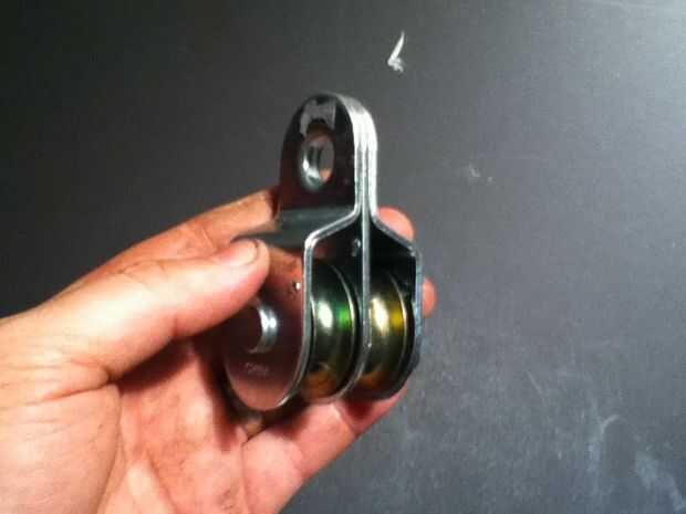 Necesita dos tipos de poleas. 2 poleas polea doble, 4 individuales polea poleas. Los dobles van en los extremos de la pieza de apoyo, uno en el extremo izquierdo y otro en el extremo derecho. Dos poleas solo van en los dos puntos del centro.