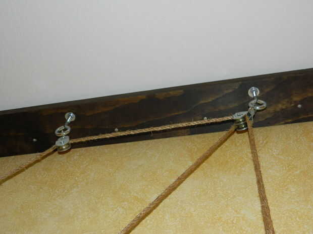 Las poleas permiten las cuerdas para mover a lo largo del sistema. Al no fijar los estantes a la cuerda y permitir que la cuerda mover libremente a través de los anillos que se unen a los estantes, los estantes pueden ser manipulados en diferentes configuraciones.
